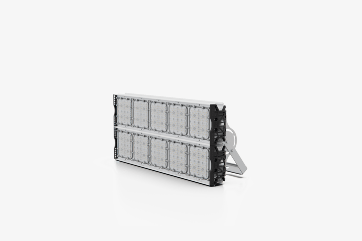 Прожектор светодиодный осветительный, представляющий собой группу светоизлучающих модулей, установленных на осветительной мачте, подключенных к одному выносному модулю питания.
